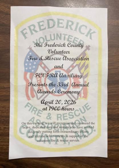 | Last night, the Frederick County Volunteer Fire & Rescue Association gathered for the 33rd Annual Awards Ceremony, an evening dedicated to honoring the outstanding dedication and service of our volunteer personnel. Held at 1900 hours at the Walkersville Volunteer Fire Company Social Hall, the event brought together volunteers, Auxiliary members, leadership, and community supporters to celebrate the extraordinary efforts that define our organization.